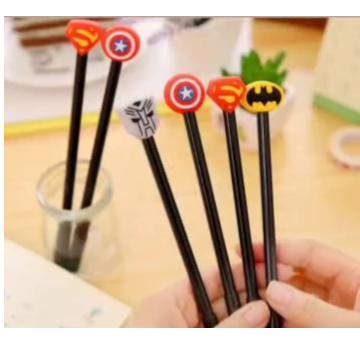 A Caneta Esferográfica ponta 0.7mm, ela é toda preta, e possui um enfeite decorativo no topo em silicone, com o formato de cada personagem.